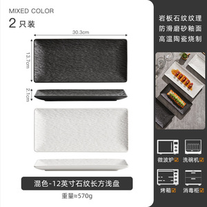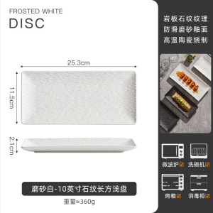 セラミックプレート、家庭用ディッシュプレート、浅いプレート、クリエイティブホテル食器、石模様の長方形プレート、マットな洋食ディナープレート、フラットプレート