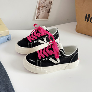 オリジナルデザインの赤い靴ひも、対照的な色、通気性と多用途のキャンバススニーカー、2025新しい多用途カジュアルスニーカー6668
