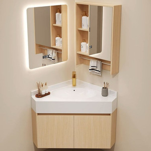 コーナーバスルームキャビネットロックスレートシームレスセラミック一体型洗面台トイレ小型アパート三角形洗面台洗面台