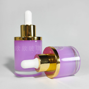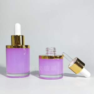 新款50ml肩套玻璃滴管瓶 矮胖圆柱平肩精华液瓶子 30ml包材分装瓶