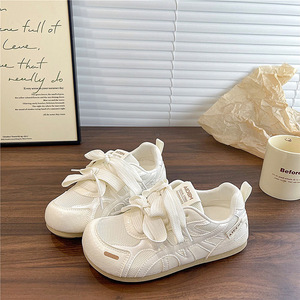 ダブル靴ひも薄いメッシュ通気性韓国語版 2025 夏イントレンド多用途醜いかわいいラウンドトゥスポーツカジュアルシューズ女性用