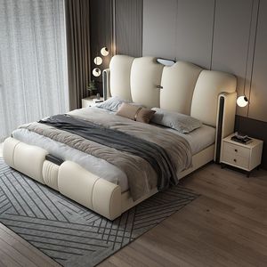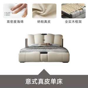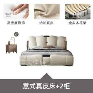 イタリア製の軽くて豪華な本革ベッド、マスターベッドルーム、インターネットセレブベッド、モダンでシンプルなレザーアートベッド、ソフトパッケージ収納ベッド、寝室の豪華なウェディングベッド