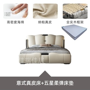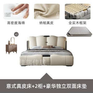 高級レザーベッド+キャビネット1台+5つ星ソフト弾性マットレス