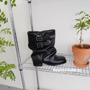 女性用プリーツパイルブーツ 2025 春夏新作ブラックメイラードブーツ女性用インナー高さレトロチムニーブーツショートブーツ
