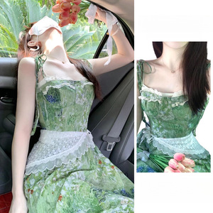 【1575人のコレクション】2025春の新作韓国花柄ドレスセット、女性用ミドル丈ドレス