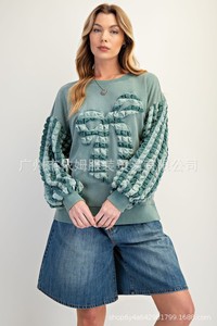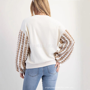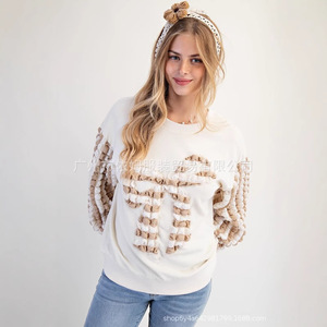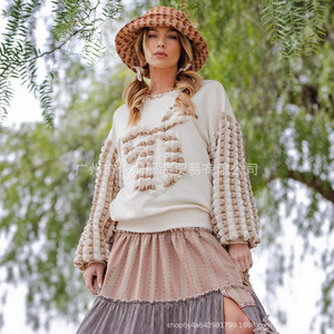 Amazon 25 秋の新クロスボーダーヨーロッパとアメリカの服リボンスプライシングプルオーバースウェットシャツファッショナブルなカジュアルトップ女性用