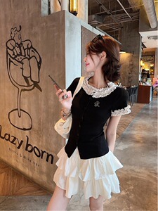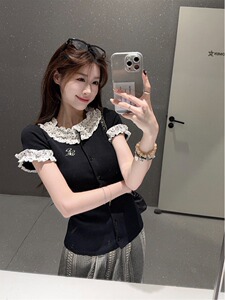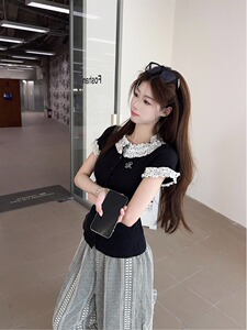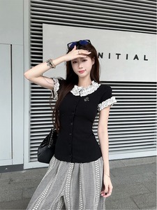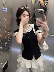 水玉模様のスプライシング半袖 T シャツ女性のための夏 2025 新しいスリムフィットレトロな気質多用途甘いトップス ins