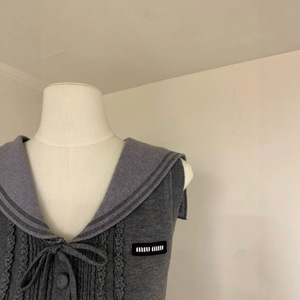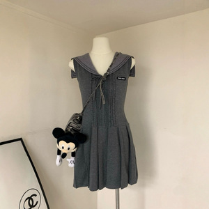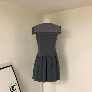 深圳南油高端女装夏季新款法式学院风海军领蝴蝶结针织百褶连衣裙