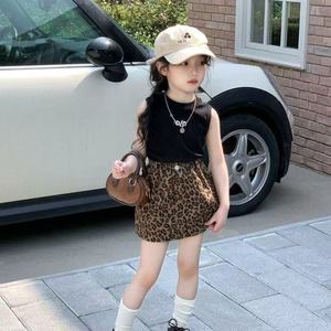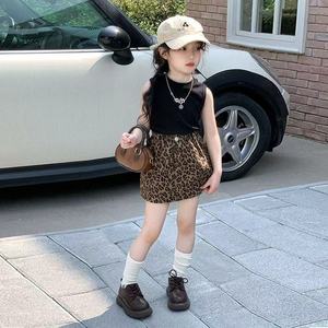 女の子のおしゃれなスーツ 2025 夏の新しいスタイル子供スタイルレタープリントベストベビーヒョウ柄スカート