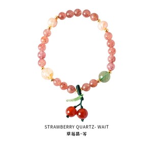 Hanluo ~ ストロベリークリスタルジルコニアフラワービーズブレスレット新中国風レトロクリスタルブレスレットファッション通勤ブレスレット女性用