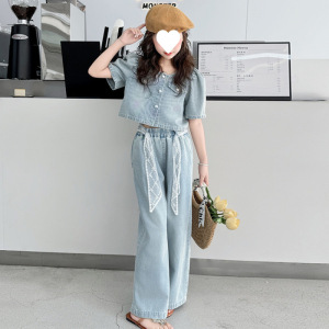女の子スーツ 2025 新しい子供服トレンディなスタイル中大型子供夏デニム半袖アウター