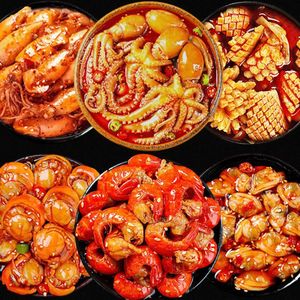 缶詰のタコ、缶詰のシーフード、缶詰のアワビ、イカ、スパイシーロブスター尾、既製のおかず、漬物