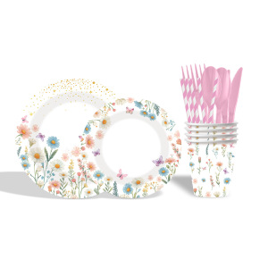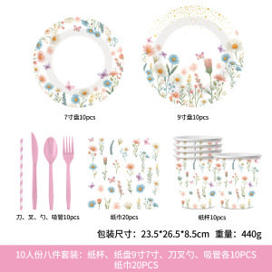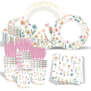 国境を越えたプリント柄の花柄誕生日パーティー装飾用品使い捨て紙皿紙コップペーパータオルテーブルクロスセット
