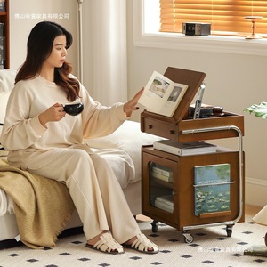 無垢材中古ベッドサイドテーブルロボットトロリー寝室収納キャビネット収納ラックレトロサイドテーブルリビングルームマガジンキャビネット