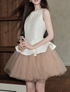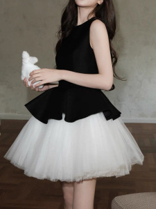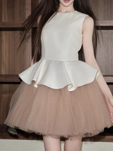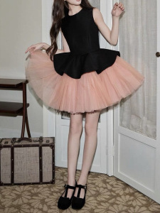 avenement/バレエ風ノースリーブラウンドネックパッチワークメッシュチュチュスカートドレスレディース夏