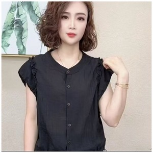 ドロップシッピング 2025 新しい夏スタイルの耳付きスリムシャツシンプルでファッショナブルなデザインのママシャツ