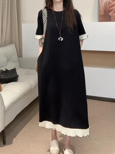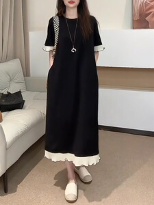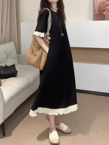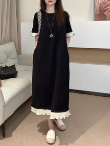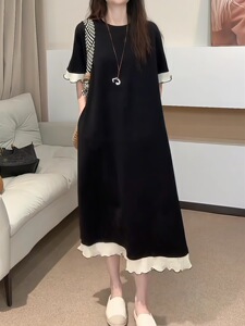 プラスサイズの女性の夏のハイエンドフレンチデザインスプライシングドレスファットmmお腹カバー痩身ヘップバーンスタイルリトルブラックドレス