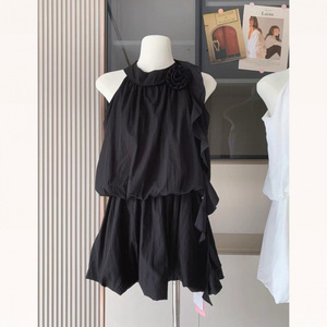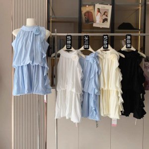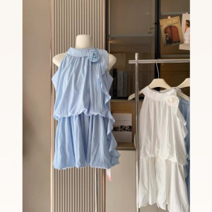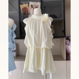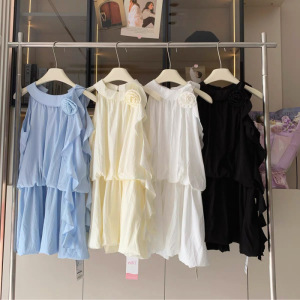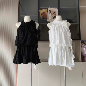 2025 新しい白いホルターネックドレス女性の夏のホットガールデザインハイエンドフレンチノースリーブウエストショートスカート