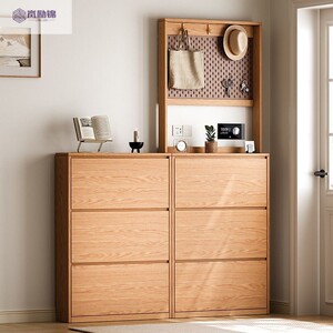 全無垢材オーク靴キャビネット超薄型ダンプシューズキャビネットホーム屋内壁キャビネット玄関ドア一体型壁収納キャビネット