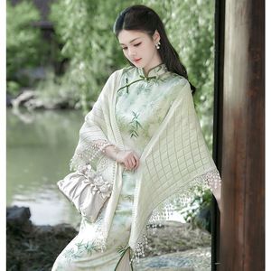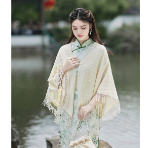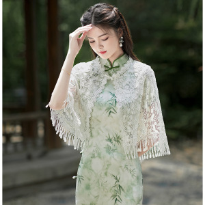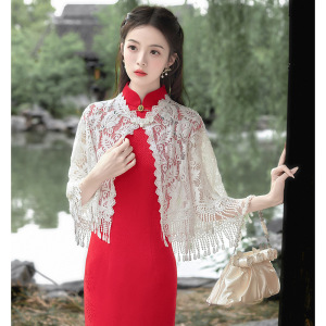 チャイナドレスショールチュールアウターカーディガン2025新しいレース多用途タッセルコートマントハイエンドの新しい中国風