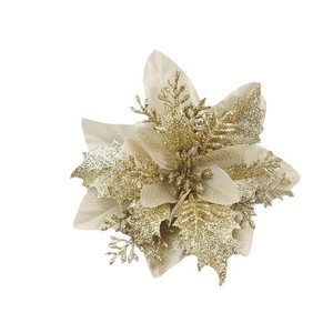 イチイの花頭 クリスマスツリー飾り シルクフラワーヘッド 越境人気商品 模造クリスマスフラワー 二重金粉