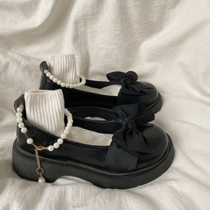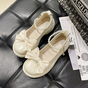 フレンチメリージェーンシューズ女性のための 2023 新作春パールリボン白スカートシングルシューズ jk 小さな革靴