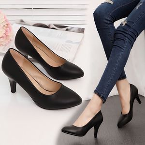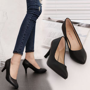 春秋新款黑色单鞋女高跟鞋尖头OL职业工作鞋细跟礼仪女士皮鞋