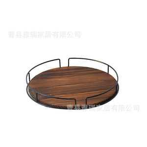 無垢材ラウンドフルーツトレイ回転可能な鉄キッチンスパイスラックデスクトップ収納トレイ浴室化粧品ベース