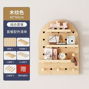 無垢材ホールボード家庭用壁収納ラックリビングルーム壁掛けパーティション収納ラック背景壁シンプルな木製本棚