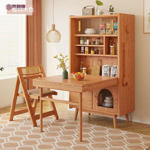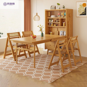 新しい小型伸縮式ダイニングテーブル無垢材長方形ダイニングテーブルサイドボード一体型折りたたみダイニングテーブルと椅子