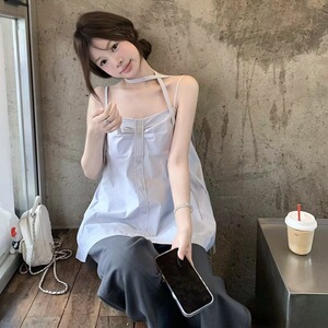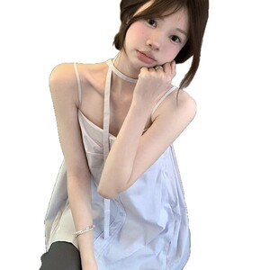 韓国の甘いスタイルのデザインプリーツキャミソールレディース夏の新しい年齢を減らすシックなスリムノースリーブトップ