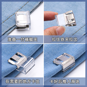 ズボンの裾が床に垂れ下がるのを防ぐ固定クリップ、縫い目のない調節可能なボタン、ズボンの長さを短くする目に見えない裾の留め具