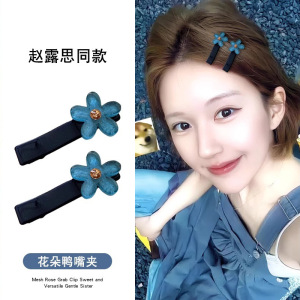 ワンラインクリップブルーアヒル口ヘアピン女性のための 2025 新しい夏サイド前髪クリップヘアピンヘアエッジクリップヘッドバンド