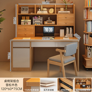 实木书桌学生家用学习桌台式电脑桌简约现代办公桌卧室带抽屉桌子