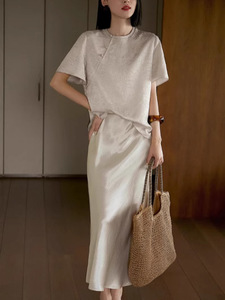 風の歌を聞いてください-月華シャツ新しい中国風ジャカード斜め襟ボタン付きルーズ半袖シャツ女性のトップス 2025 夏