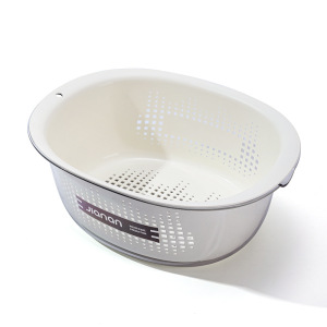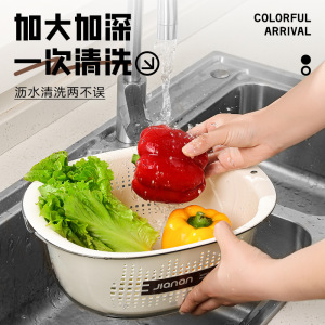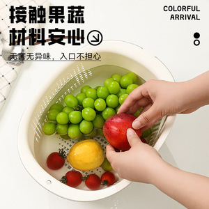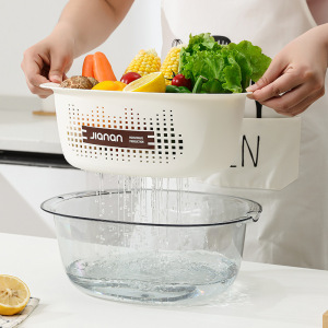 Jian'an 排水バスケット、野菜洗い桶、二層厚みのあるキッチン家庭用果物洗いと米と野菜のバスケット、絶妙なフルーツトレイ