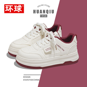 ユニバーサルレディースシューズアンコラレッドキャンパスホワイトシューズ2025夏の新作人気厚底学生多用途スニーカー