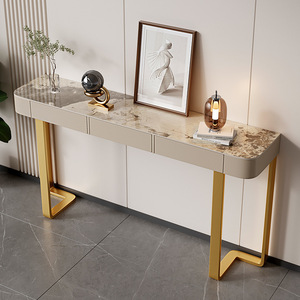 简约现代轻奢白色玄关桌端景台岩板网红意式靠墙入户柜半圆客厅