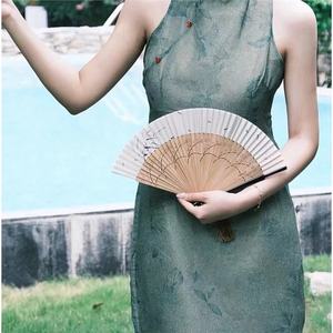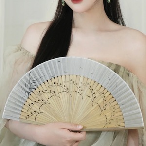 扇子折りたたみレトロスタイルエレガントな女性の扇子チャイナドレス漢服扇子 6.6inch 日常ギフト扇子グレー小草魚