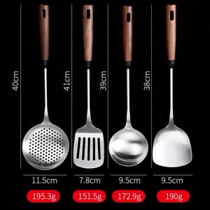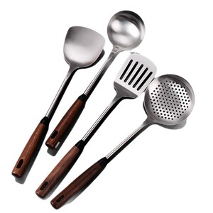 304 ステンレス鋼スパチュラスプーン家庭用フライパンスプーンノンスリップシリコーン抗火傷木製ハンドルスープスプーンザルザルキッチン用品セット