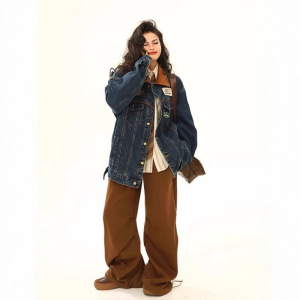 2025春季新款美式复古牛仔外套男女机车潮牌翻领夹克宽松情侣上衣