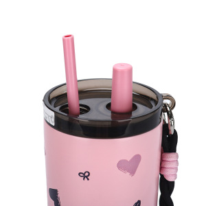 新しいクリエイティブな漫画プリントの魔法瓶カップ、セラミックライナー、ティードレン付きコーヒーカップ、女の子向けの見栄えの良いストローカップ