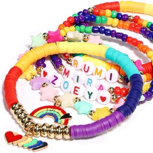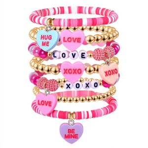バレンタインデー ピンク ラブ ブレスレット 7点セット ソフトクレイ 多層重ね付けブレスレット バレンタインデー ラブレター ブレスレット