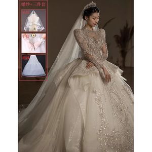 逃亡王女ウェディングドレス女性のための 2025 新しいブライダルヘビーデューティ高級ビッグテール長袖高品質メインガーゼ