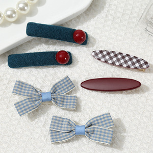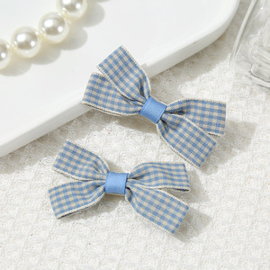 子供用リボンエッジヘアピン前髪ヘアピン女の子甘いチェック柄シンプルなベビーヘアアクセサリーペアクリップ前髪クリップ