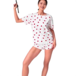 クロスボーダーヨーロッパとアメリカのスリムな新しいパジャマ甘いホットガールラウンドネックラブプリントソフト半袖女性のホームウェアカジュアルウェア