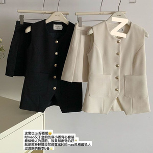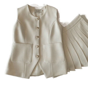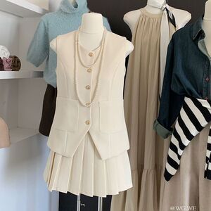 Xiaoxiangfeng 富の娘スーツノースリーブベスト A ラインプリーツスカートスーツ女性の夏のファッション