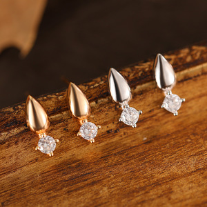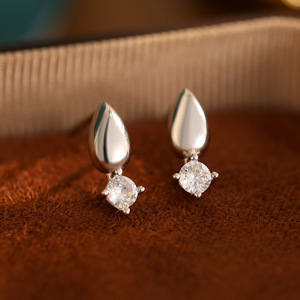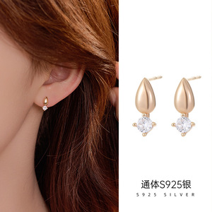 Ficus Tree S925 シルバー K ゴールドメッキ フラッシュ ダイヤモンド スモール ドロップ イヤリング 女性用 シンプルでハイエンドの新しいイヤリング ニッチ デザイン