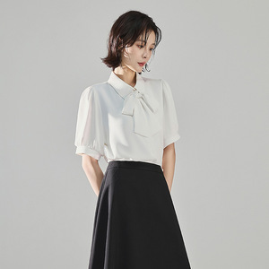 Aixuan 白半袖シャツ女性の夏薄い教育プロ通勤フォーマル取り外し可能なストリーマーシフォントップ