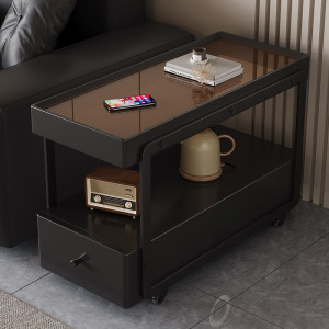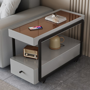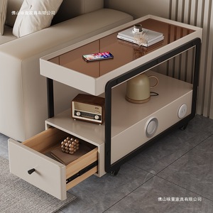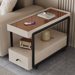 25 新しいモバイルサイドテーブルリビングルームソファサイドキャビネット多機能パーティションキャビネットライト高級スリットキャビネットクリームスタイルサイドキャビネット